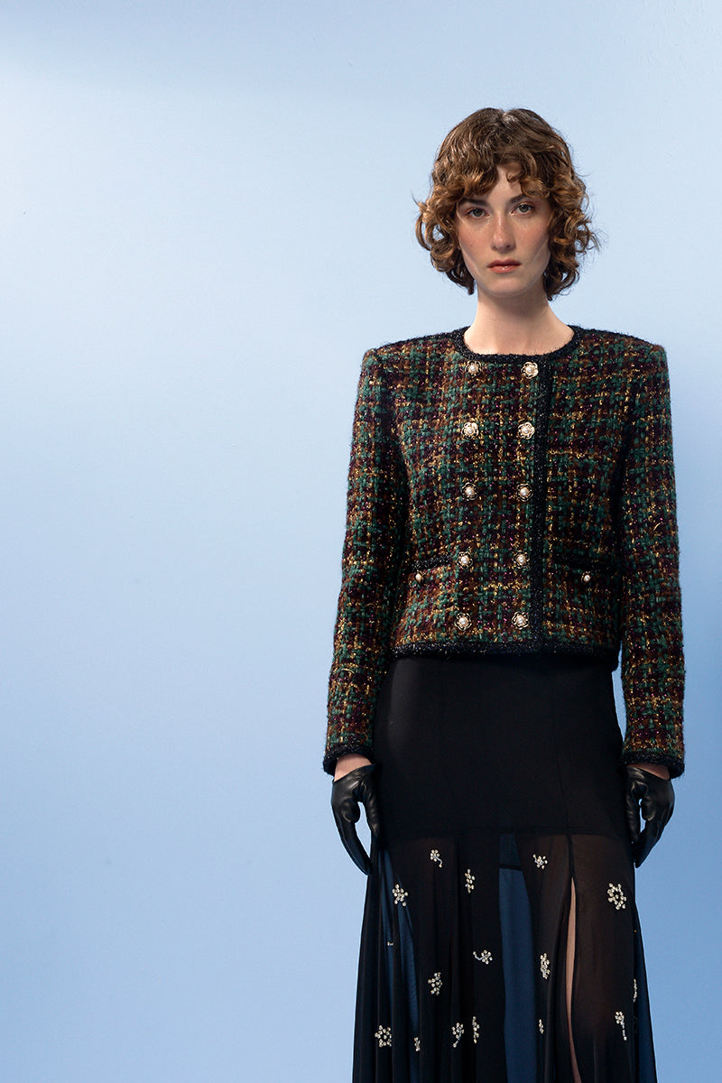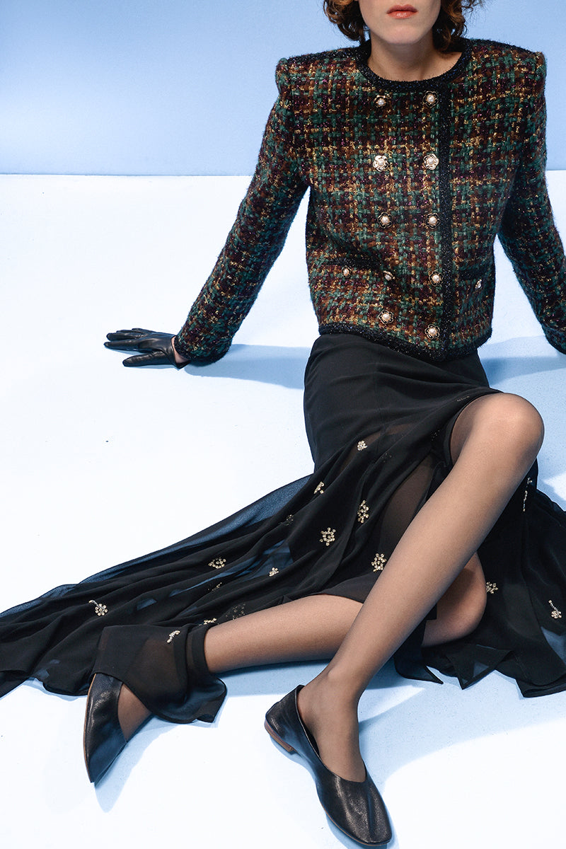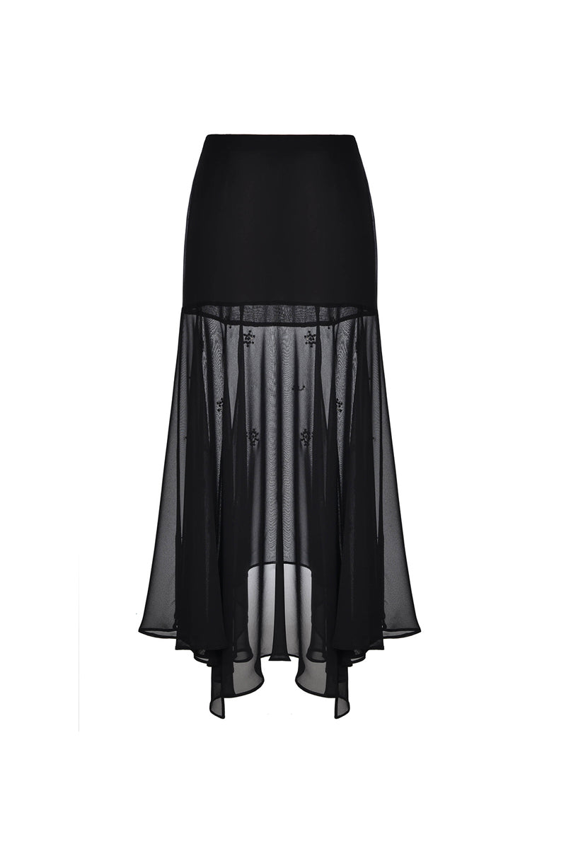 BLACK SHEER SILK LAYERED MAXI SKIRT