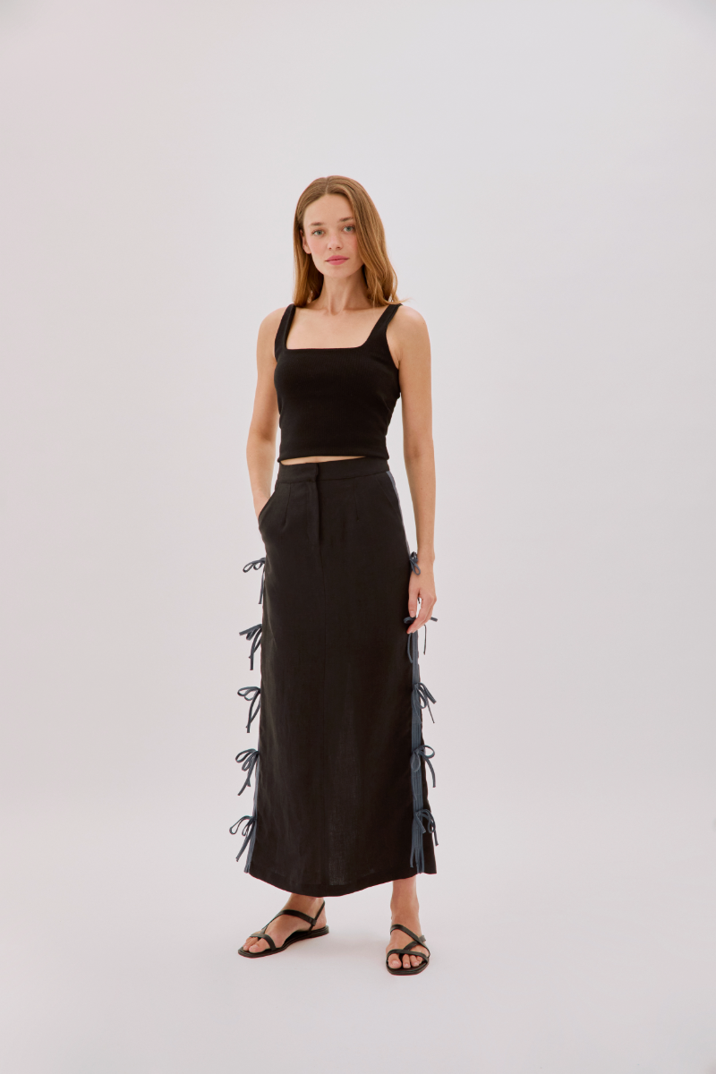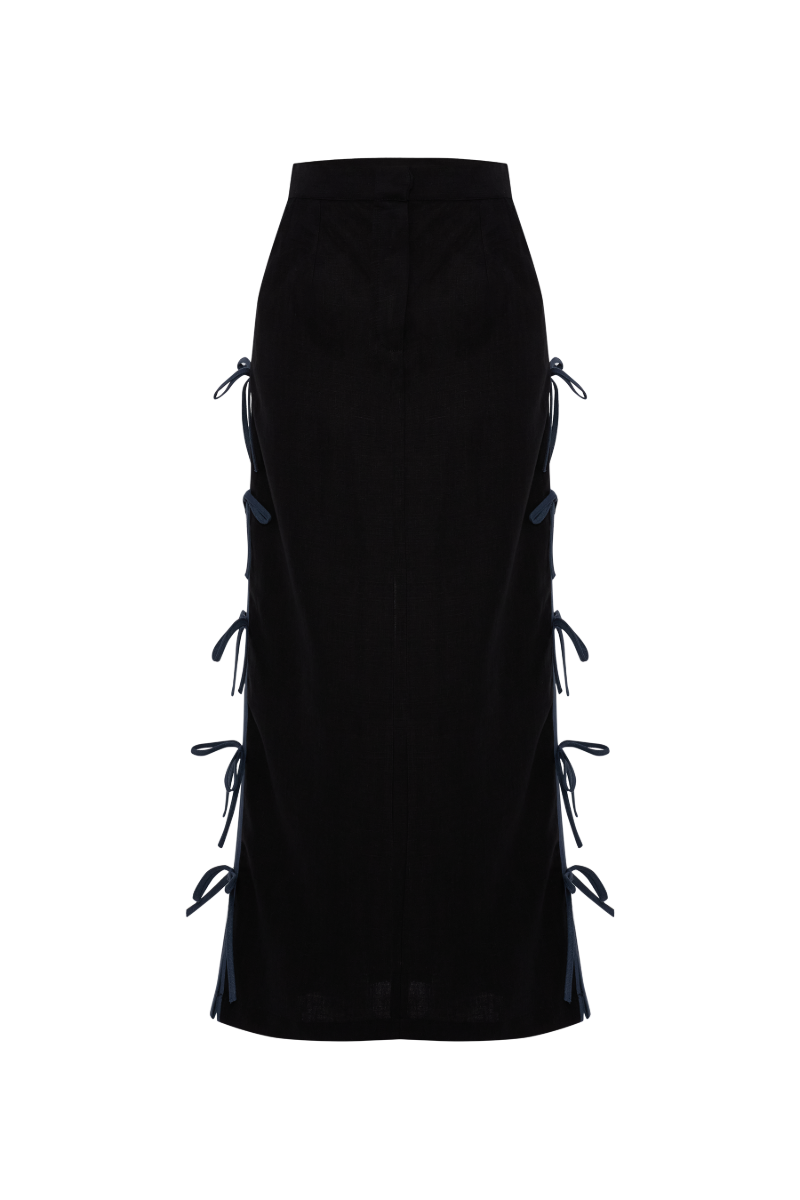 CAROLINA BLACK LINEN BOW MIDI SKIRT