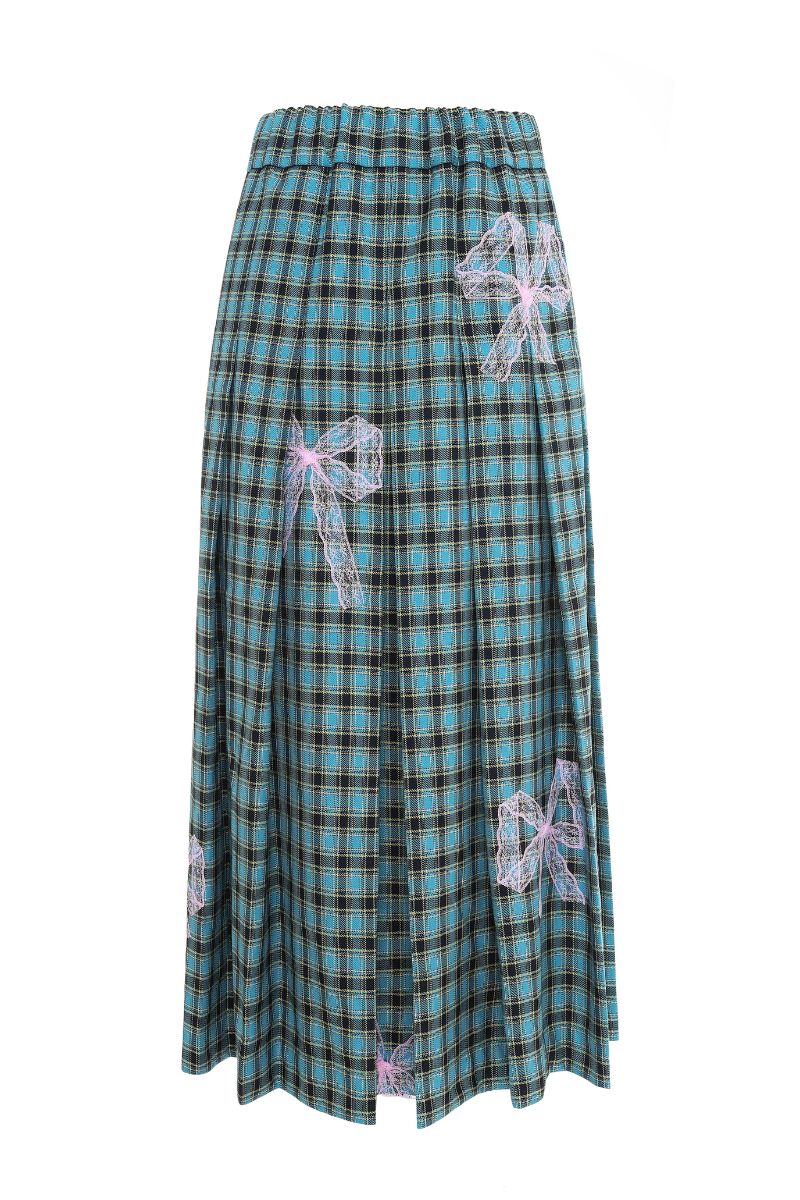 CHECKERED PLEATED SKIRT WITH BOW TIES IN TEAL AND PINK