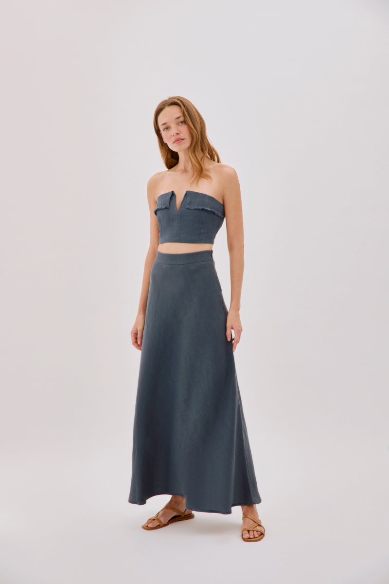 CLARA INDIGO LINEN MAXI SKIRT