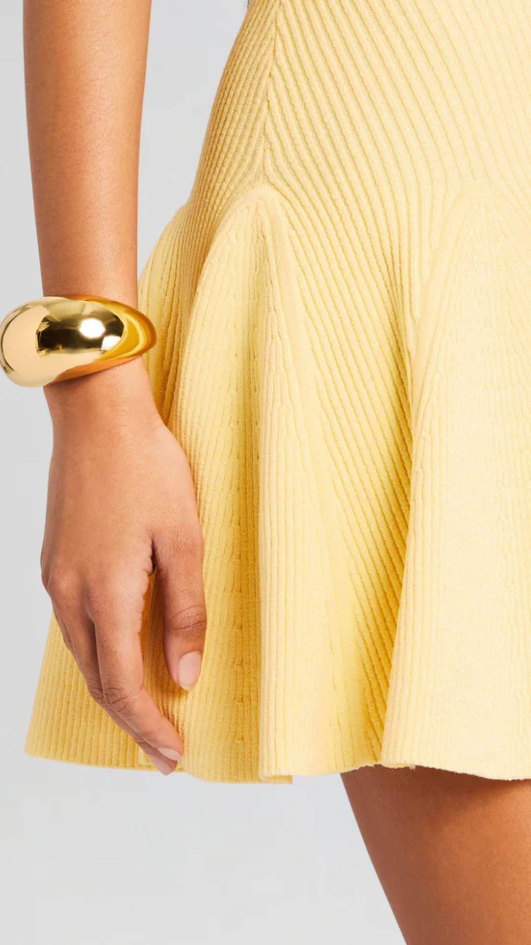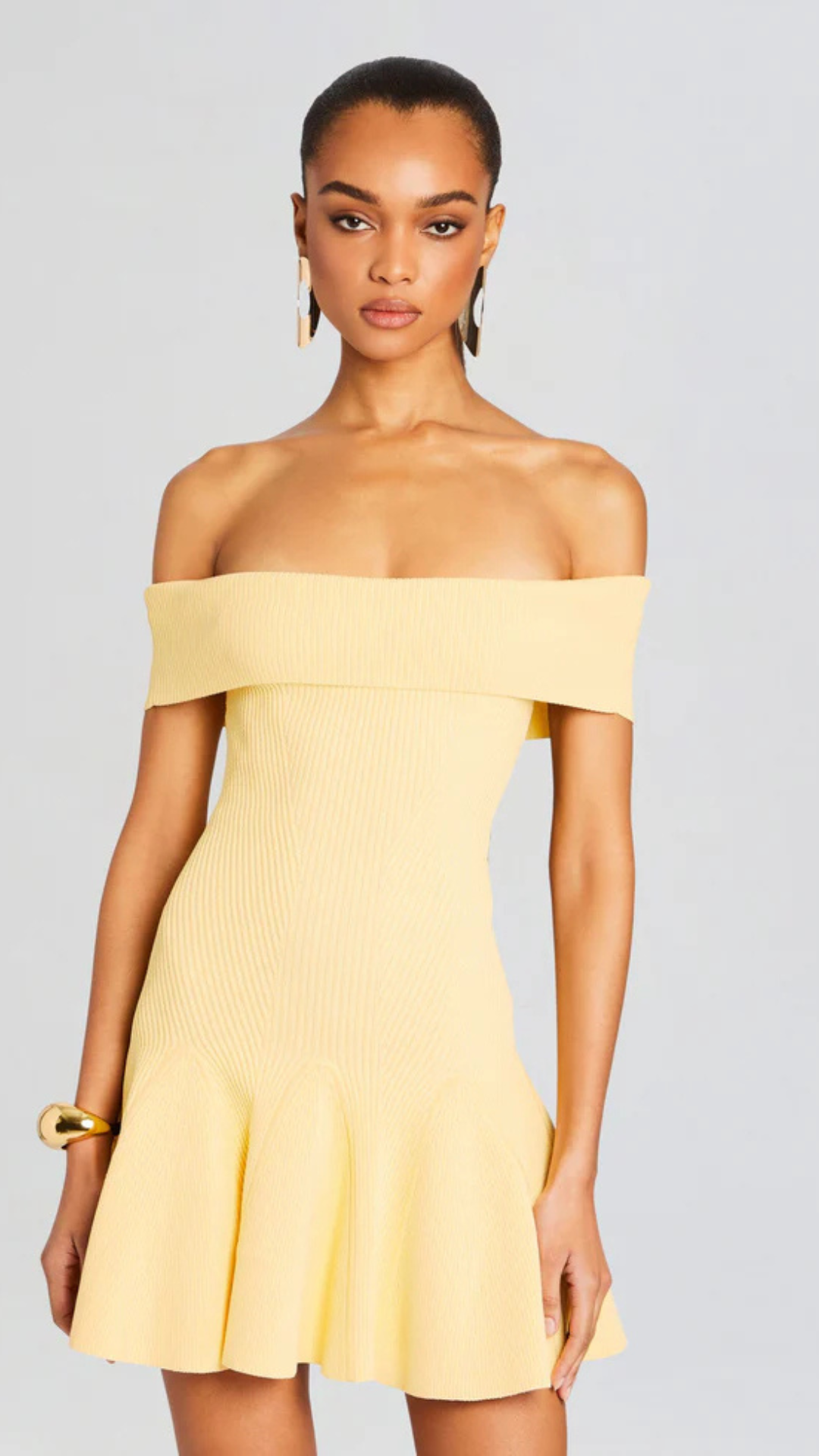 Introducing our Erica Dress, the epitome of girly sophistication with a touch of flair. Elevate your wardrobe with this charming piece that seamlessly combines pastel hues, feminine details, and timeless elegance. Crafted from knit fabric, this mini dress offers a figure-flattering bodycon fit that hugs your curves in all the right places. The off-the-shoulder neckline adds a flirty and feminine touch, while the flare at the end adds a hint of movement and charm. Shown here in Buttercream.