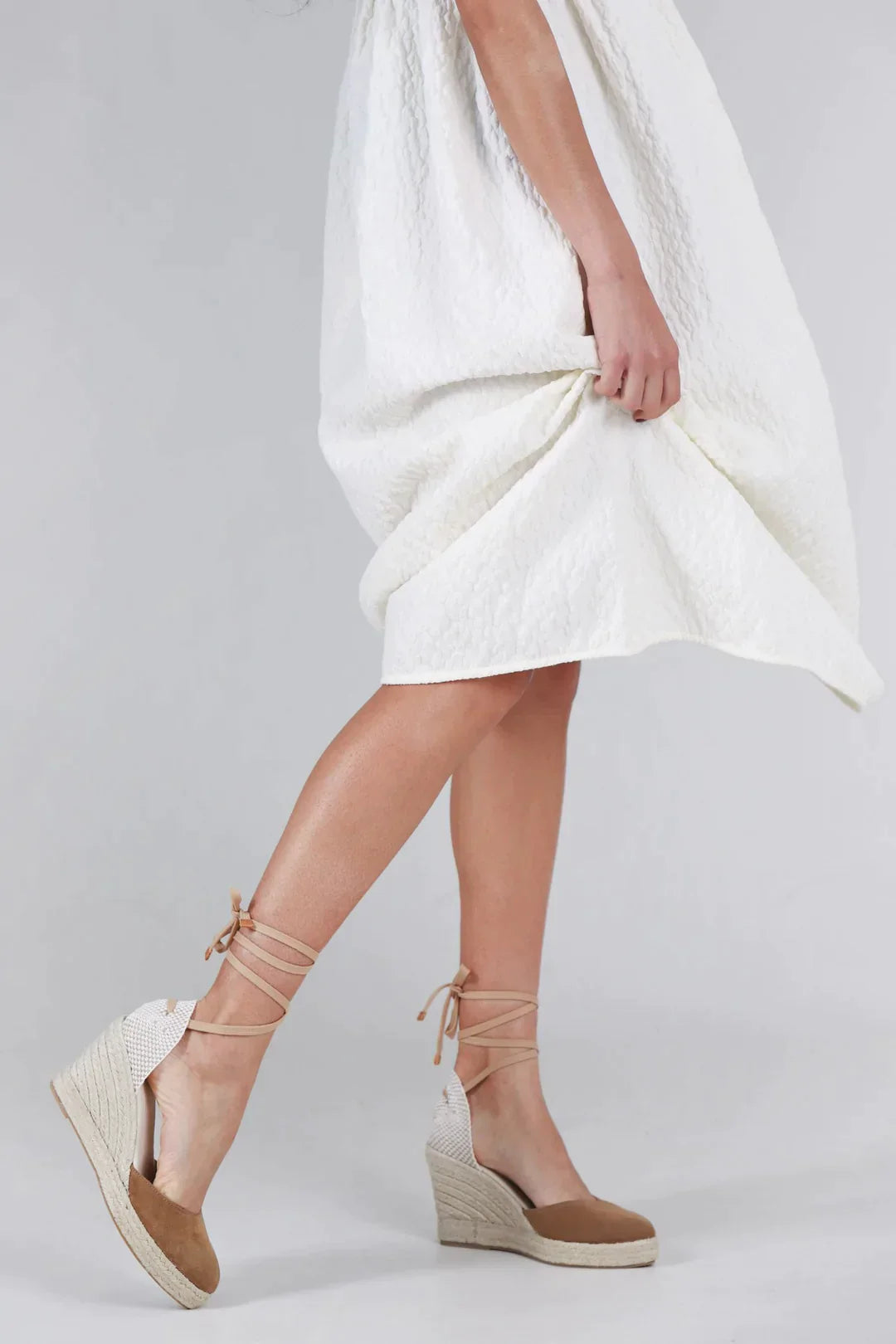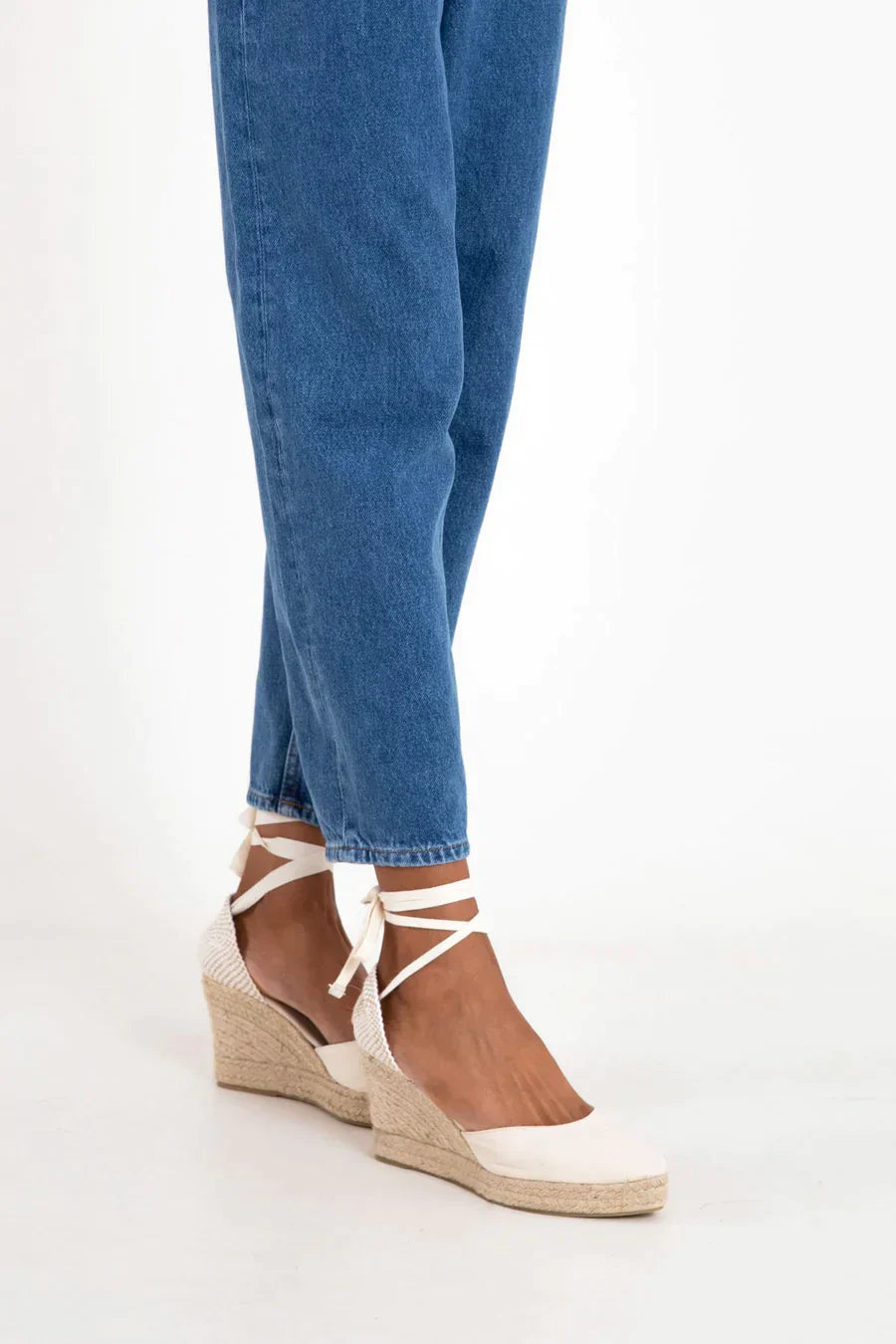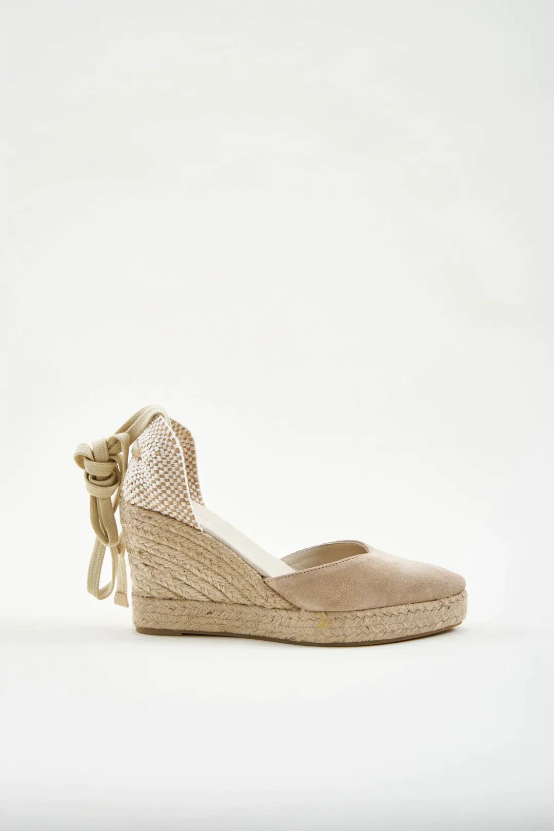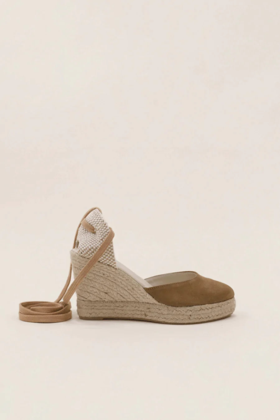 Mediterranean design, craftsmanship, and carefully selected materials come together to create the Sardinia wedge. They are a revamped classic with a very low-cut to slim your foot, slightly rounded toe and straps that embrace the leg to ensure support. The wedge height is approximately 9 cm (includes its 2 cm braided jute platform) and rubber sole.