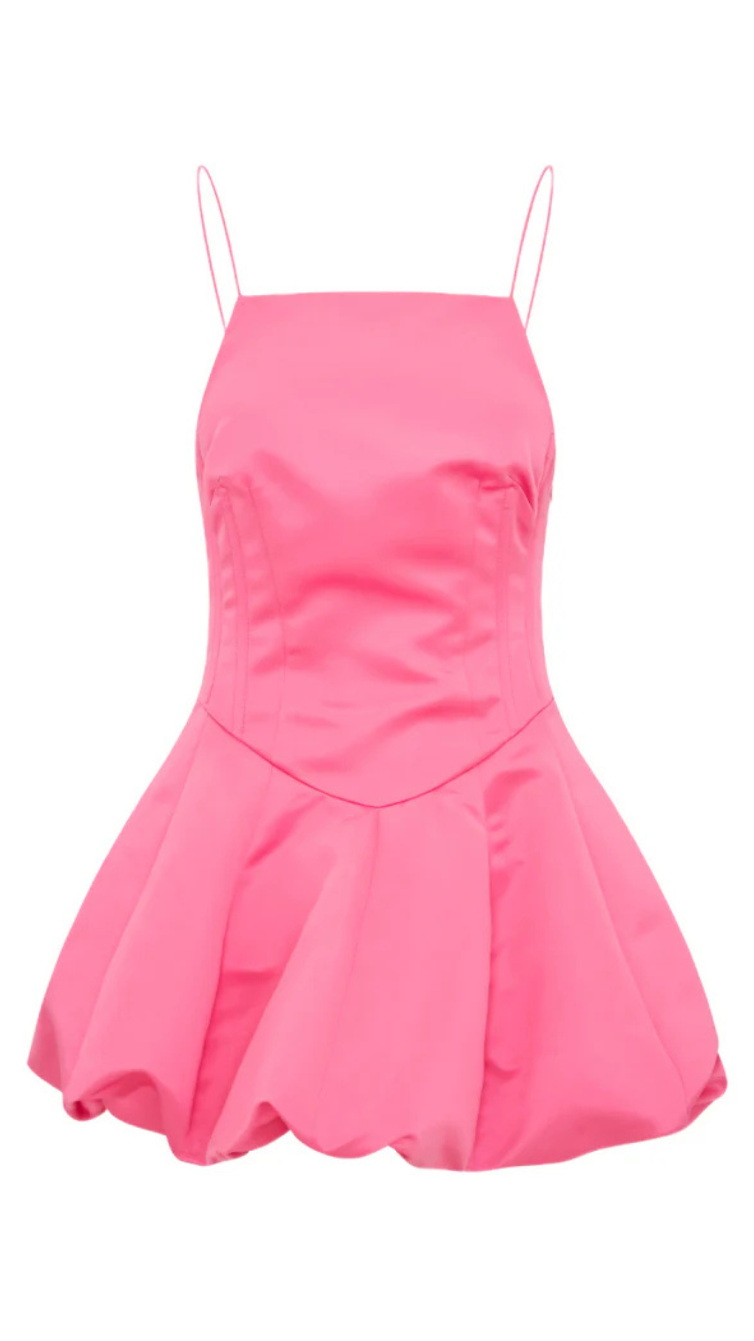 On our way in the Jake Dress. This stunning party mini debuts with a luxe, satin fabric. The dress features a flirty bubble mini skirt which sits beneath a corset-like, fitted bodice with a dropped waist. Thin spaghetti straps and a high neckline give this piece an elevated and chic silhouette. Wear on your next date night, party and girl’s night out.