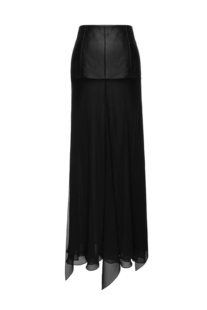 Shell: top 100% genuine leather; Bottom: Chiffon; lining: 100% silk