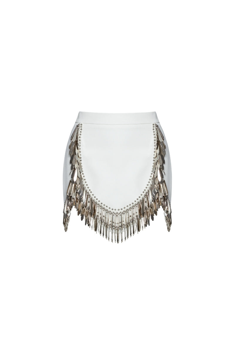 - Hand knitted straps which finishes with triangular metallic beads at the hem